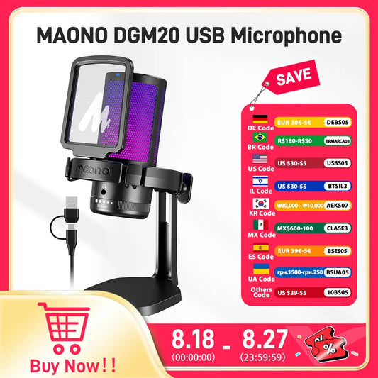 DGM20 Gaming Microphone,Usb Microphone Condenser Mic RGB Gaming Mic with Noise Reduction Software,Mic Gain,One Key Mute